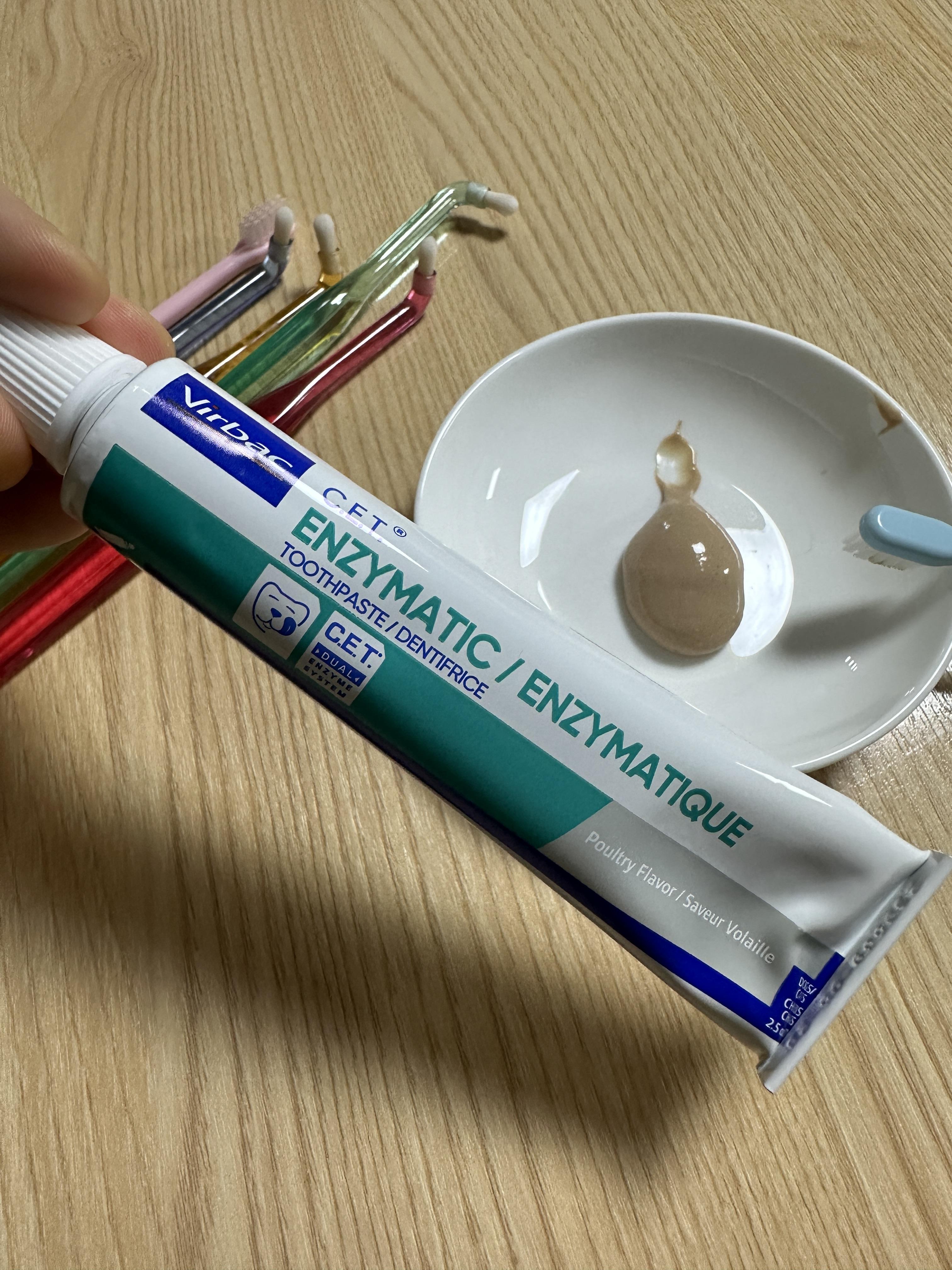 최근에 주문한 버박 닭고기맛 치약은 꽤나 점성이 있지만, 꿀처럼 흘러내리는 치약이다. 기호성이 좋아서 까다로운 민트도 거부감이 없는데… 문제는 너무 흘러서 고양이 수염이며 어깨털에 치약이 묻기 쉽다는 것이다. 그런 문제로 발버둥침이 큰 초코 같은 경우엔 버박보단 자이목스 오라틴 젤 치약이 좋다. 끝부분이 일반 치약처럼 생기지 않고 긴 주동이로 치약이 나오기 때문에 입 옆으로 주둥이를 넣고 치약을 짠다음 문질러 주거나 그 사이에 칫솔질을 해줄 수 있다. 자이목스 오라틴은 두가지 종류로 나뉘는데 그냥 일반 치약과 잇몸치료 치약으로 나뉜다. 고양이가 많기 때문에 나는 치약을 2가지 정도 구비하고 때에 따라 바뀌준다. 뭘 사야하나 고민하는 집사님들… 걍 다 사세요.